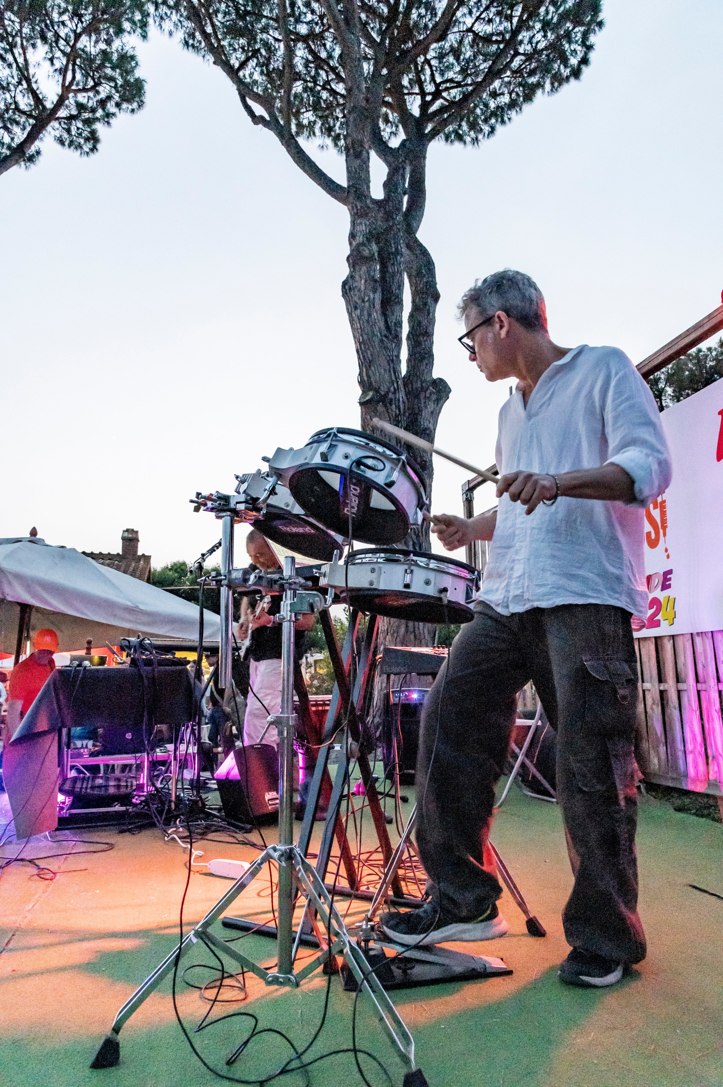 - Andrea Pietrangeli: Poliedrico artista romano, trasmette la sua energia vibrante sul palco mentre suona la chitarra con maestria.